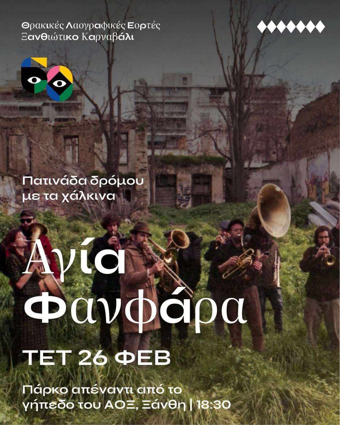 Την Τετάρτη 26 Φεβρουαρίου 2025, η Αγία Φανφάρα θα γεμίσει τους δρόμους και τις πλατείες της Ξάνθης με πνευστά, κρουστά, χορό και ατελείωτο κέφι! 🎺🎷🥁
